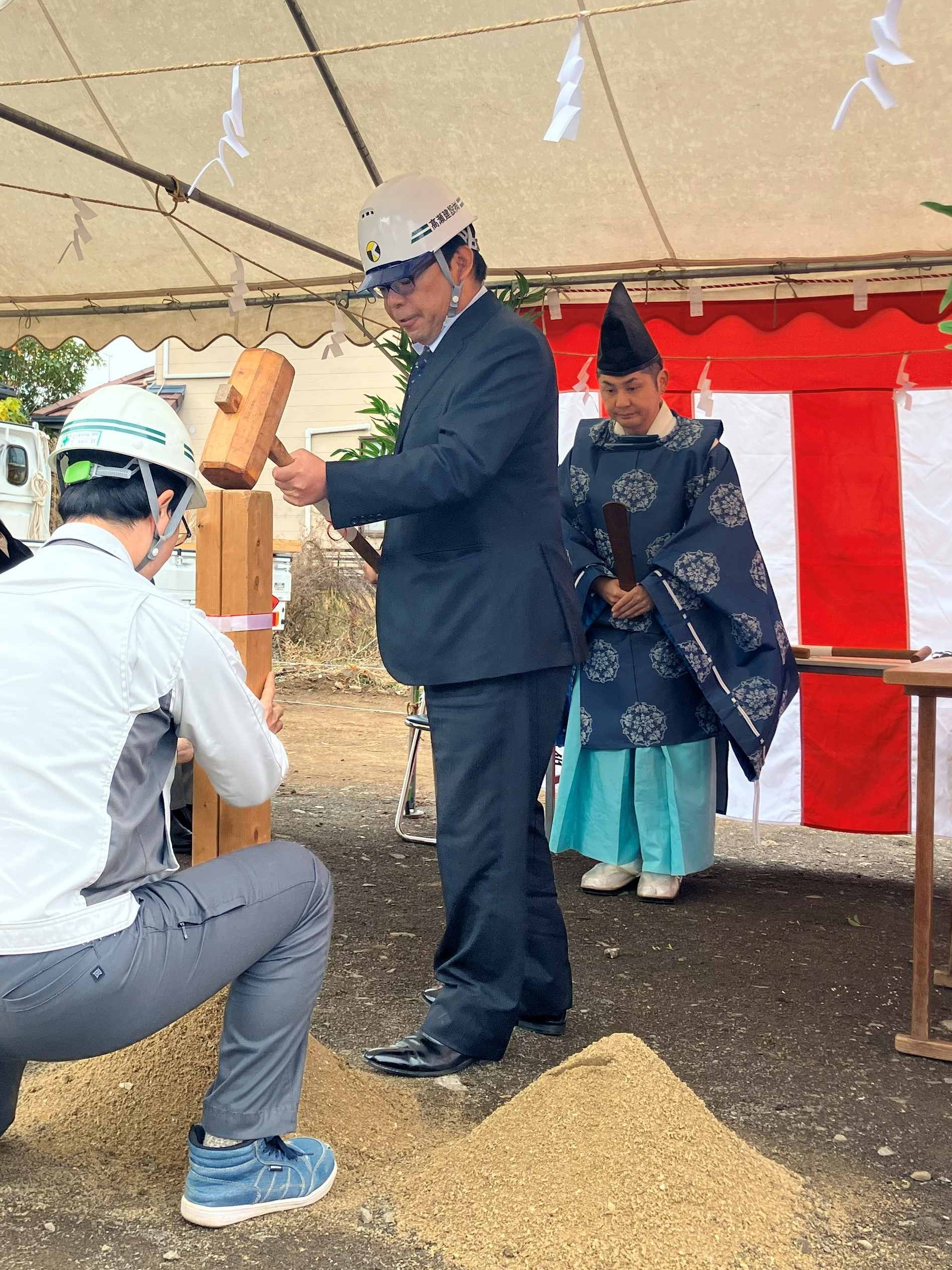 施工者による杭打ちの儀が執り行われました。